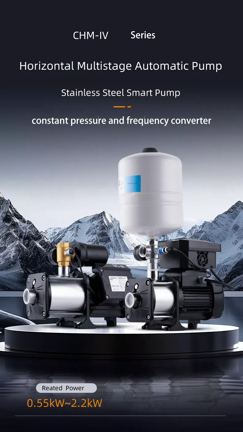 La serie CHM12/IV Smart Inverter Series horizontal de acero inoxidable de acero inoxidable con la bomba centrífuga es un producto relativamente maduro en el mercado actualmente con una estructura compacta y trabajo estable, bajo ruido de operación, una eficacia de hasta 44-70%. Todos los componentes de paso de agua están hechos de acero inoxidable AISI304. Se usa ampliamente en