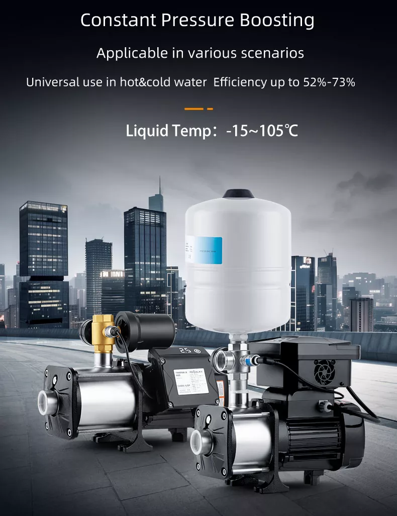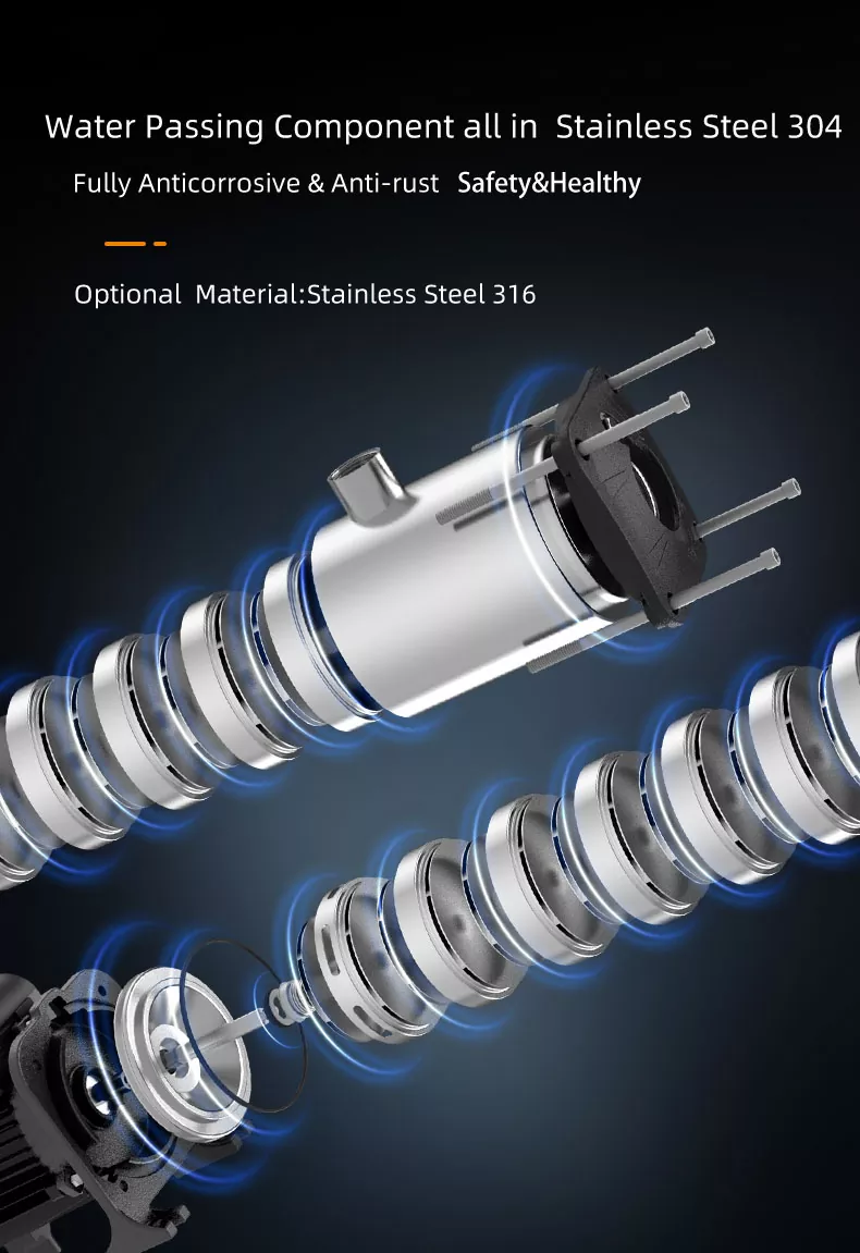 La serie CHM8/IV Smart Inverter Series horizontal de acero inoxidable de acero inoxidable La bomba centrífuga es un producto relativamente maduro en el mercado actualmente con una estructura compacta y trabajo estable, bajo ruido de operación, eficiencia de hasta 44-70%. Todos los componentes de paso de agua están hechos de acero inoxidable AISI304. Se usa ampliamente en