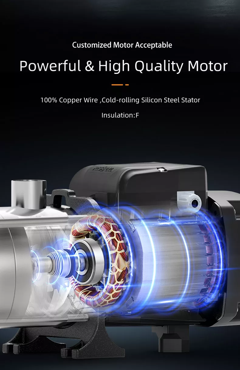 Desde el suministro de agua y el aumento de la presión hasta los sistemas de enfriamiento y circulación industrial, nuestra bomba de etapas múltiples horizontales de acero inoxidable es lo suficientemente versátil como para manejar una amplia gama de aplicaciones. Su configuración de varias etapas permite mayores capacidades de presión, lo que lo hace ideal para su uso en edificios de gran altura e instalaciones comerciales.